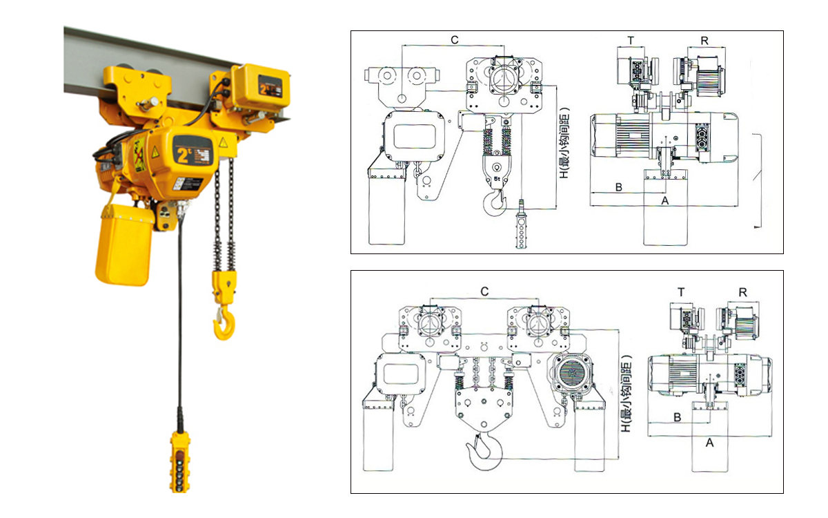 低凈空環(huán)鏈電動(dòng)葫蘆適用于廠房高度較低又對(duì)提升高度有嚴(yán)格要求的工作場所使用,尤其適用于臨時(shí)搭建的廠房內(nèi)或者在其內(nèi)需要擴(kuò)大有效起升空間的場所。低凈空環(huán)鏈電動(dòng)葫蘆由2個(gè)跑車以及一個(gè)電動(dòng)主機(jī)組合而成。