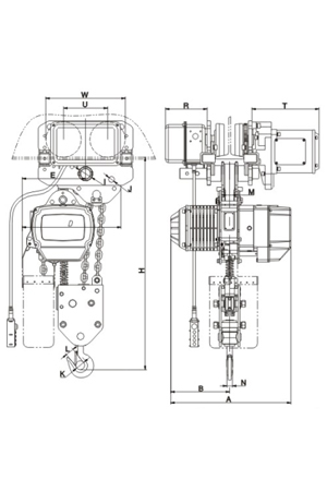 | 掛板式環(huán)鏈電動葫蘆(7.5T-50T) 尺寸參考: | ||||||||